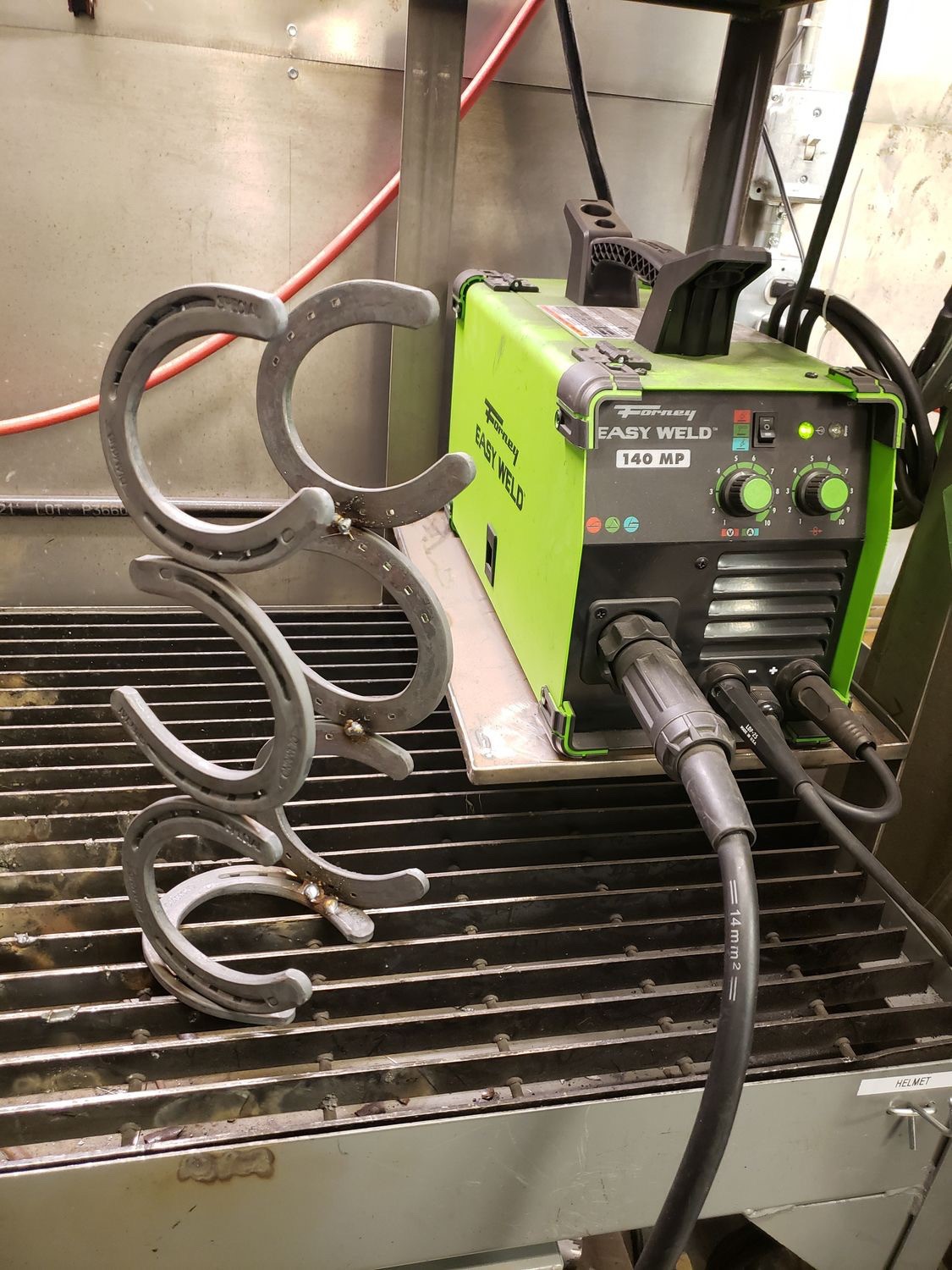 For the next step, I began to tack weld each horseshoe together at the joint. I used my Forney Easy Weld 140 MP for this portion, and it worked like a dream.